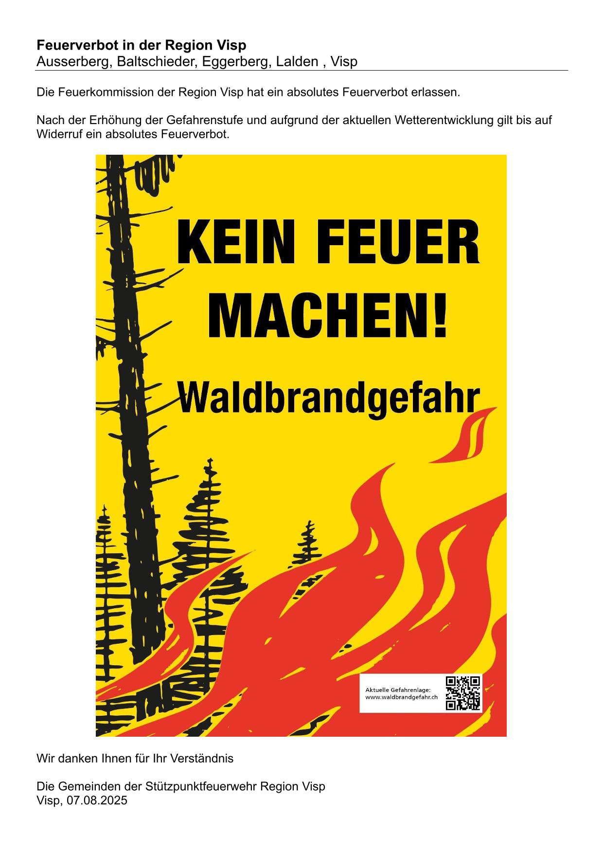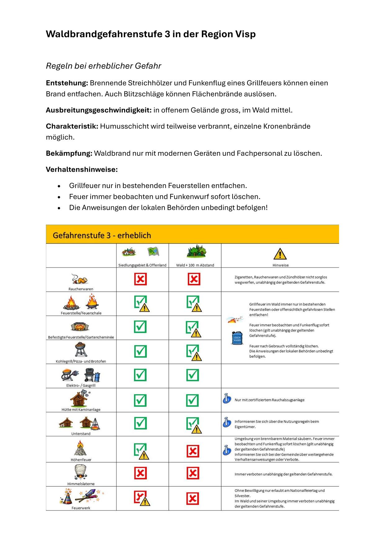 Waldbrandgefahrenstufe 3 in der Region Visp