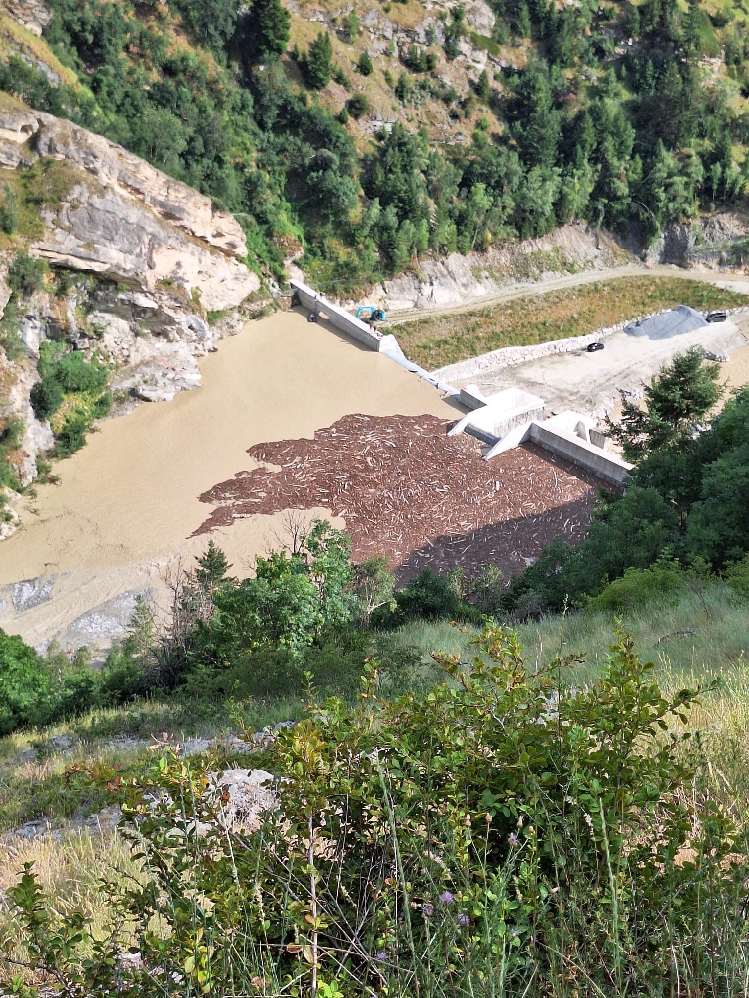 Am vergangenen Montag führte ein heftiges Schlagwetter in Baltschieder zu massiven Auswirkungen. Der erste Geschiebesammler am Talausgang wurde innert kurzer Zeit nahezu vollständig mit Kies, Steinen, Schlamm und insbesondere mit grossen Mengen Holz gefüllt.