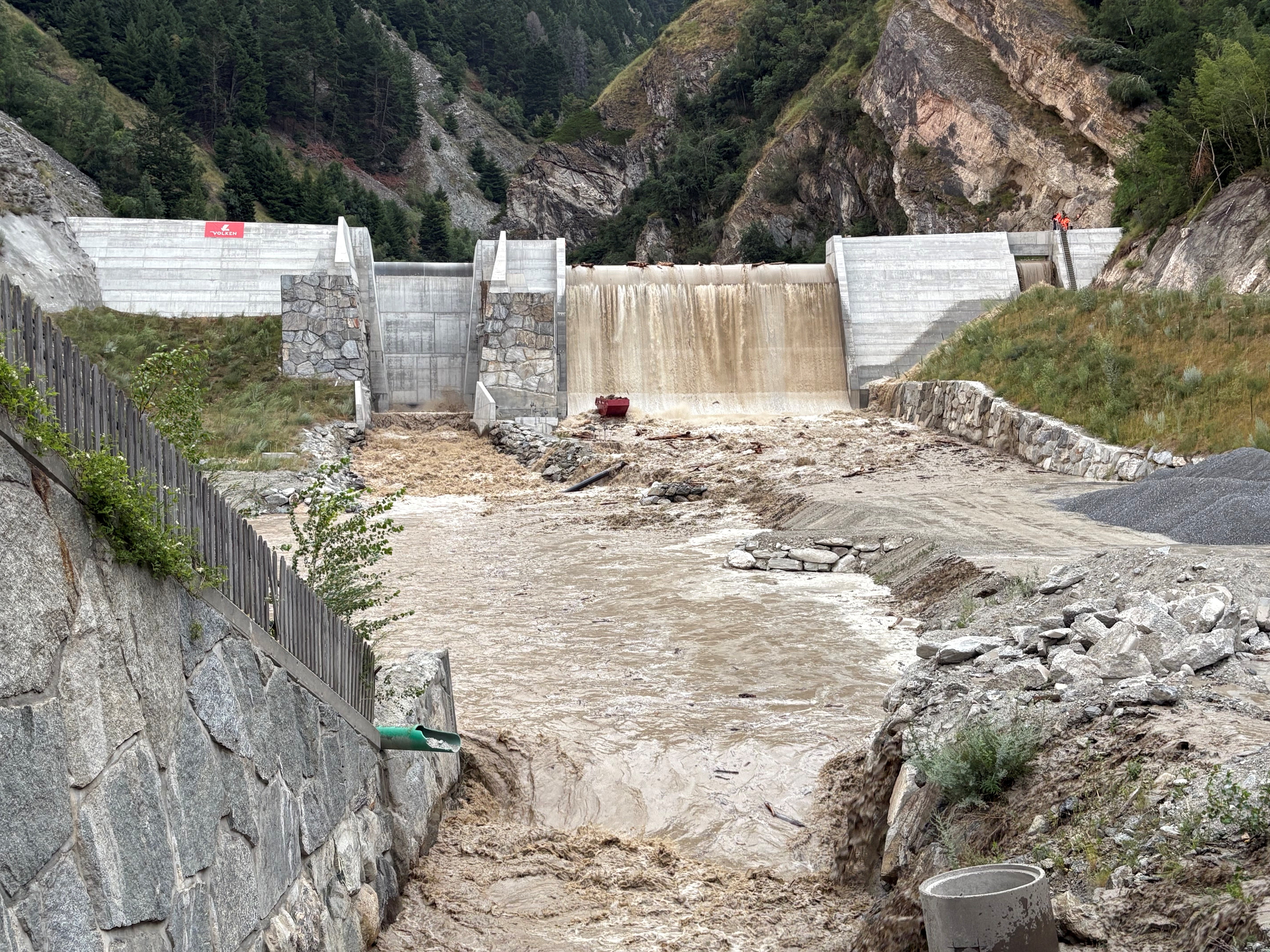 Ein weiteres Gewitter am Dienstagabend brachte den Geschiebesammler an seine Kapazitätsgrenze, woraufhin es zum Überlauf kam. Dieser konnte jedoch kontrolliert in den Baltschiederbach geleitet werden. Das mitgeführte Holz wurde vor dem Eintritt in den Bachlauf entfernt, wodurch grössere Schäden verhindert werden konnten.