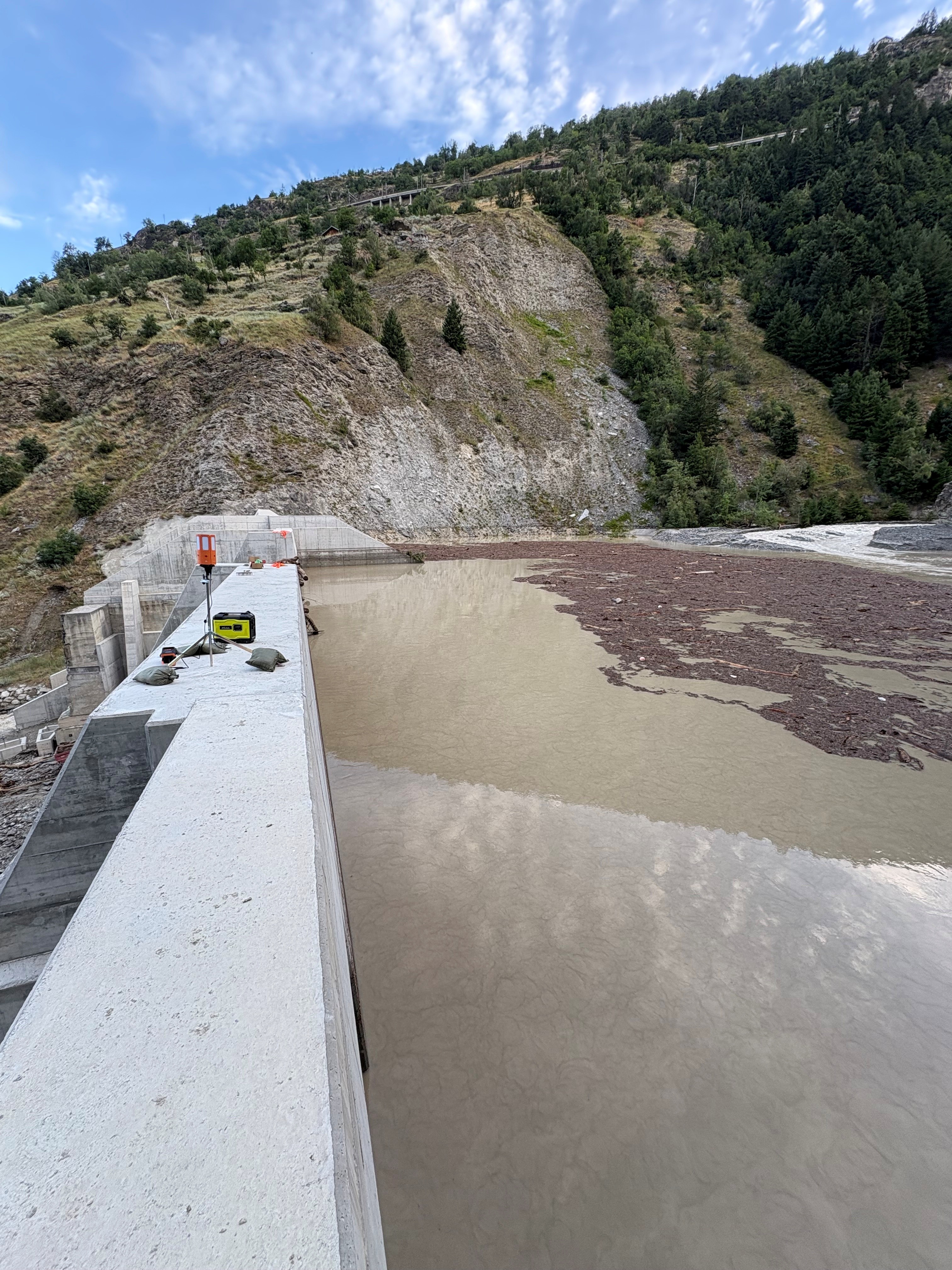 Derzeit setzen wir verschiedene Massnahmen um, um den Pegel im ersten Geschiebesammler zu senken und somit bei einem weiteren Unwetter über die notwendige Reserve zu verfügen.