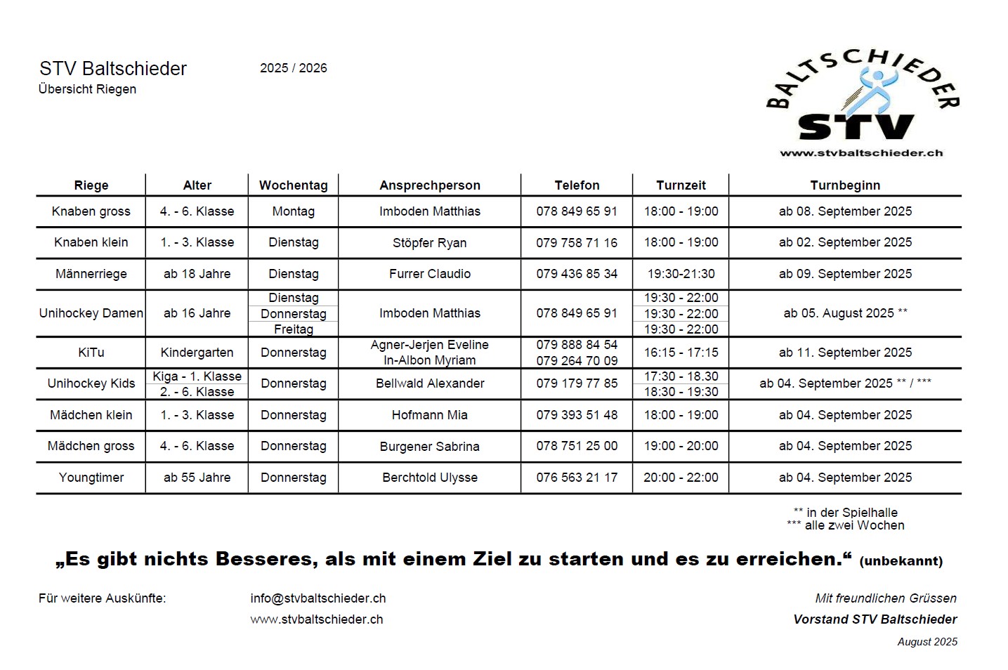 Wochenprogramm STV Baltschieder