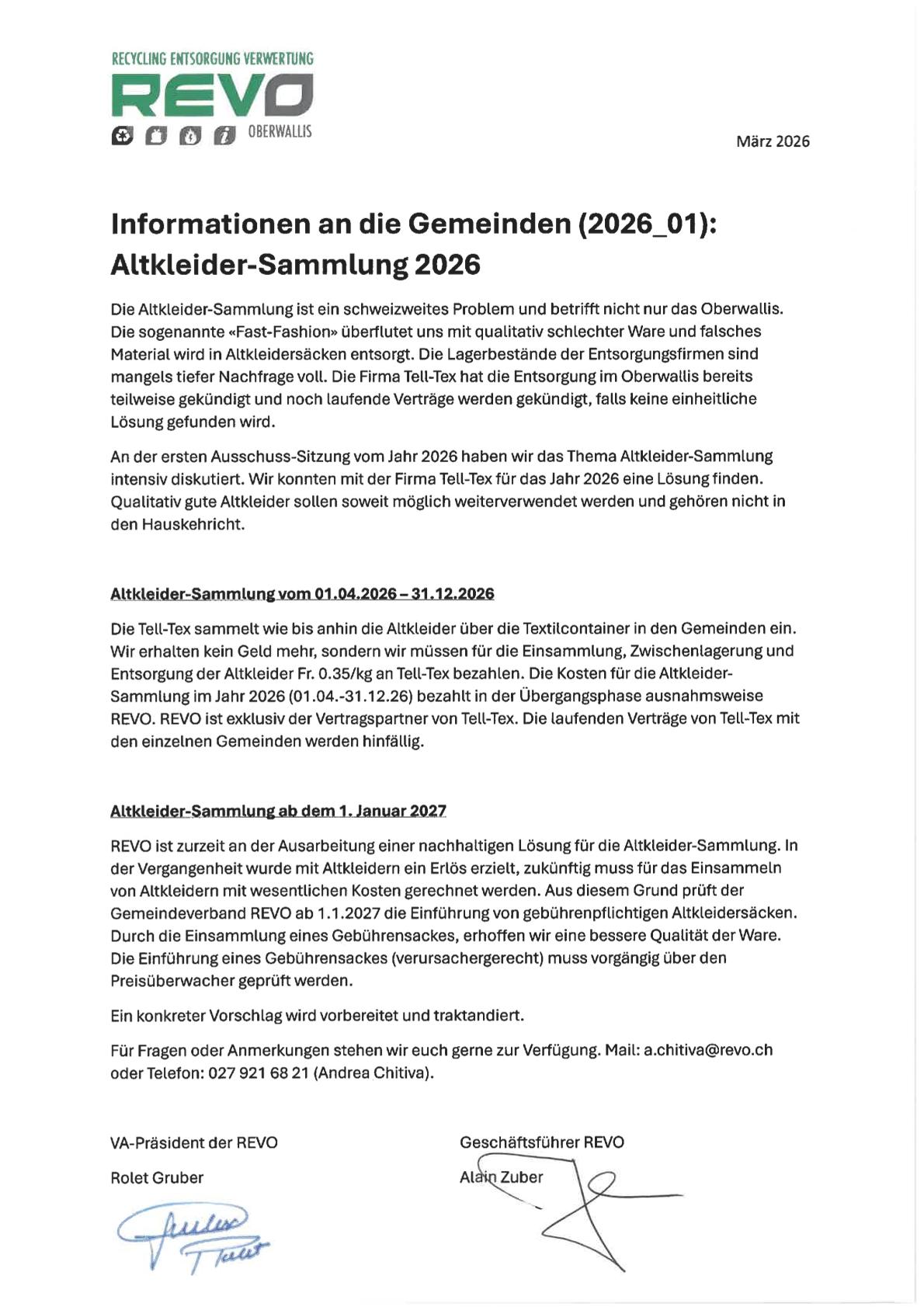 Infoblatt zur Altkleider-Sammlung